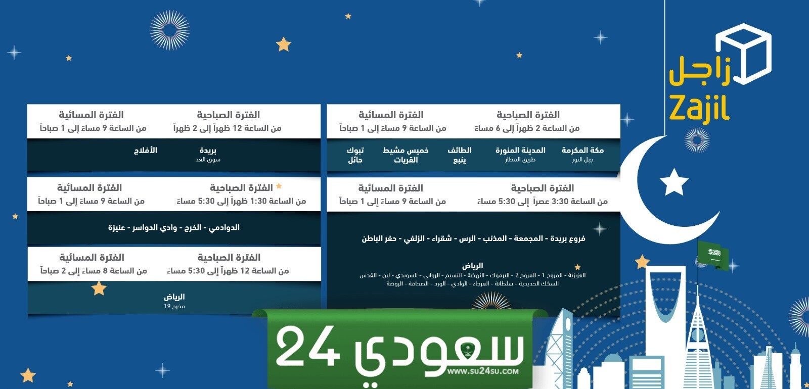 | الدوادمي – الخرج – وادي الدواسر – عنيزة | من الساعة 12:00 ظهراً إلى الساعة 17:30 مساءً | من الساعة 20:00 ظهراً حتى الساعة 2:00 صباحاً |