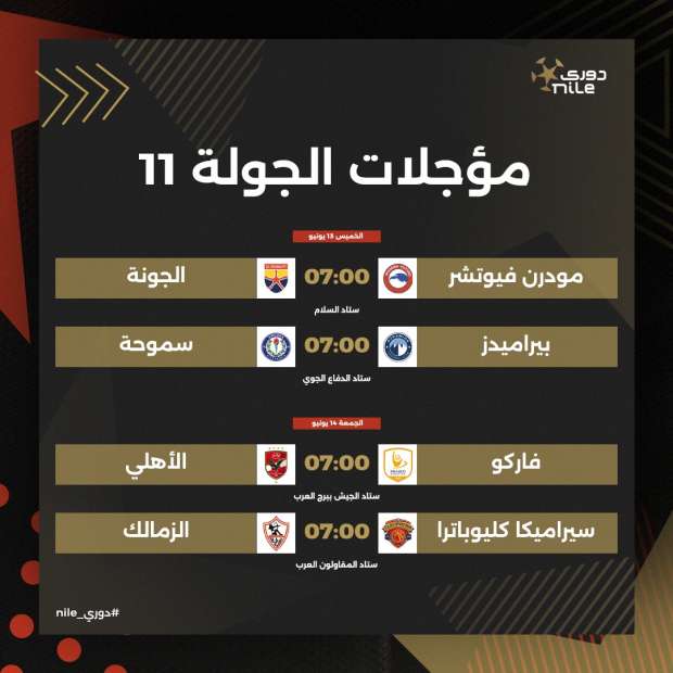 مواعيد مباريات الجولة 11 من دوري Nile.. مواجهات ساخنة