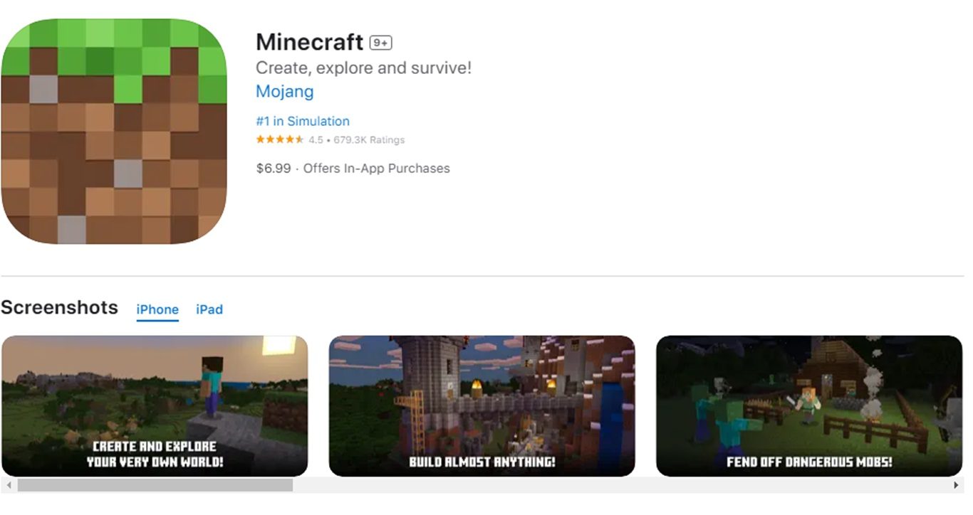 أخيرًا، أصبح بإمكان جميع لاعبي الأجهزة المحمولة تنزيل لعبة Minecraft ولعبها بسهولة نسبية. يمكنك الوصول إلى اللعبة على كل من أجهزة iOS وAndroid. يمكن لأجهزة iOS زيارة متجر التطبيقات بينما يمكن لأجهزة Android الانتقال إلى متجر Google Play والبحث عن Minecraft. تبلغ تكلفة الإصدار الكامل من Minecraft 7 دولارات أمريكية في أي من المتجرين ولا يوجد إصدار مجاني “خفيف” متاح، حيث تم إيقافه في عام 2014.