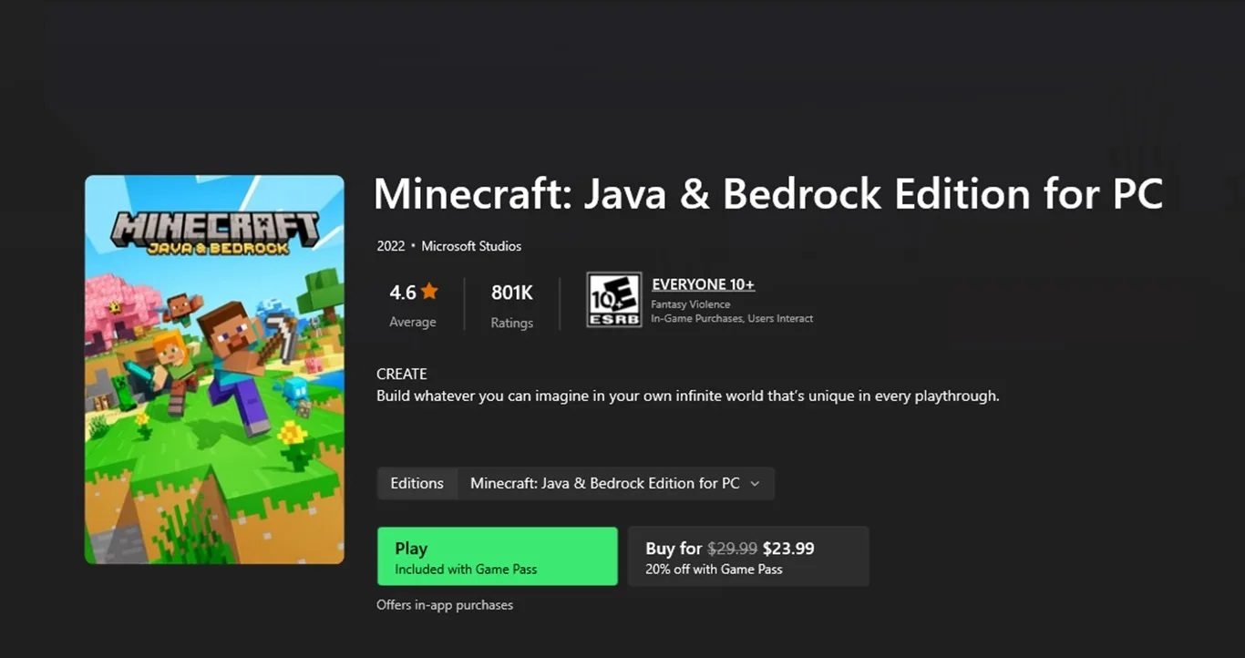 لسوء الحظ، تعد لعبة Minecraft لعبة مدفوعة. ومع ذلك، يمكن لأولئك الذين لديهم اشتراك في PC Game Pass لعب اللعبة “مجانًا” من خلال الاشتراك. يمكنك تجربة Minecraft على الكمبيوتر الشخصي باستخدام PC Game Pass مقابل 1 دولار (انقر هنا).