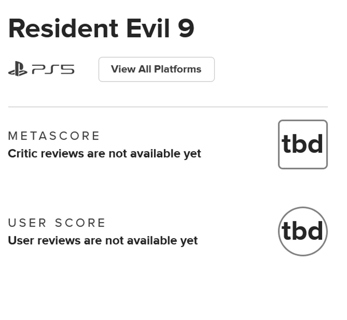 انتشرت اليوم أخبار عن افتتاح شبكة Metacritic المتخصصة في مراقبة مراجعات الألعاب الصفحة الرسمية للعبة. وهذا يدل على أن إعلانها أصبح قريباً، حيث يعتقد البعض أن الشبكة تلقت معلومات تخص اللعبة، مما دفعها إلى فتح صفحتها الرسمية الخاصة.