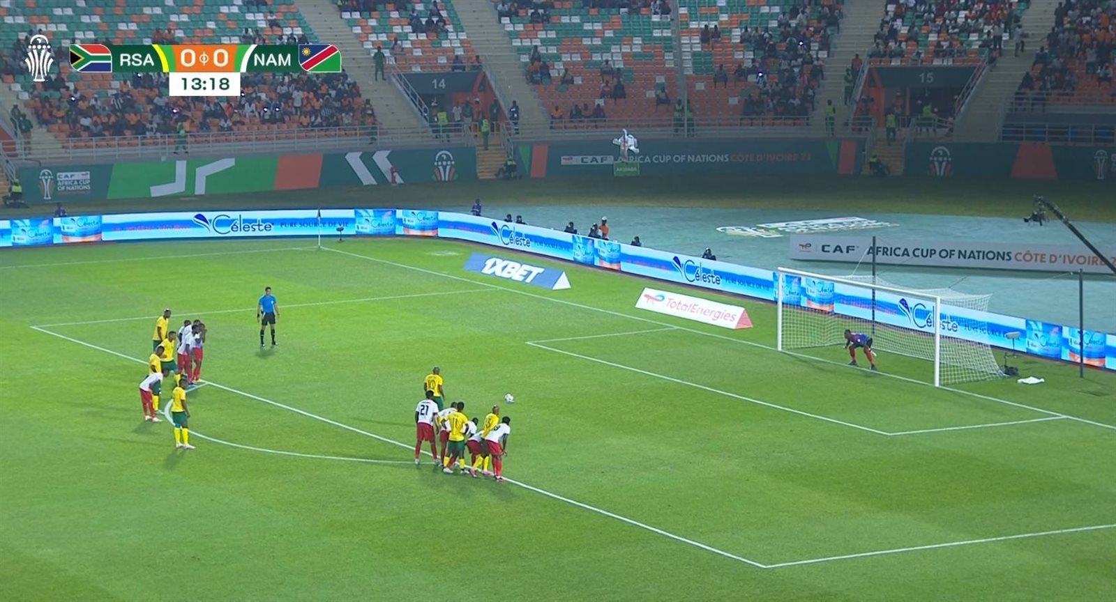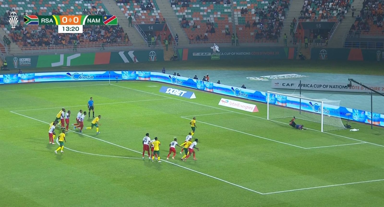 وسجل أهداف جنوب أفريقيا في مرمى ناميبيا كل من: بيرسي تاو في الدقيقة 14 من ركلة جزاء، وسجل ثيمبا زواني هدفين في الدقيقتين 25 و40، وموسيكو في الشوط الثاني.
