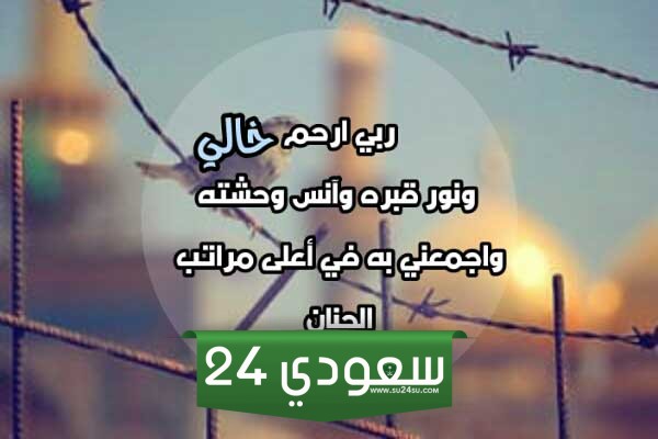 • رحل جسده ولم يرحل ذكره الطيّب، اللهم في كل دقيقه تمر عليه في قبره اسألك ان تفتح له باب تهب منه نسائم الجنة لا يسد ابداً، اللهم اجعل له في قبره نوراً وارّه يا رب منزلته في الجنة، اللهم ارحم خالي “الاسم” واغفر له اللهم اجمعنا به في جنتك.