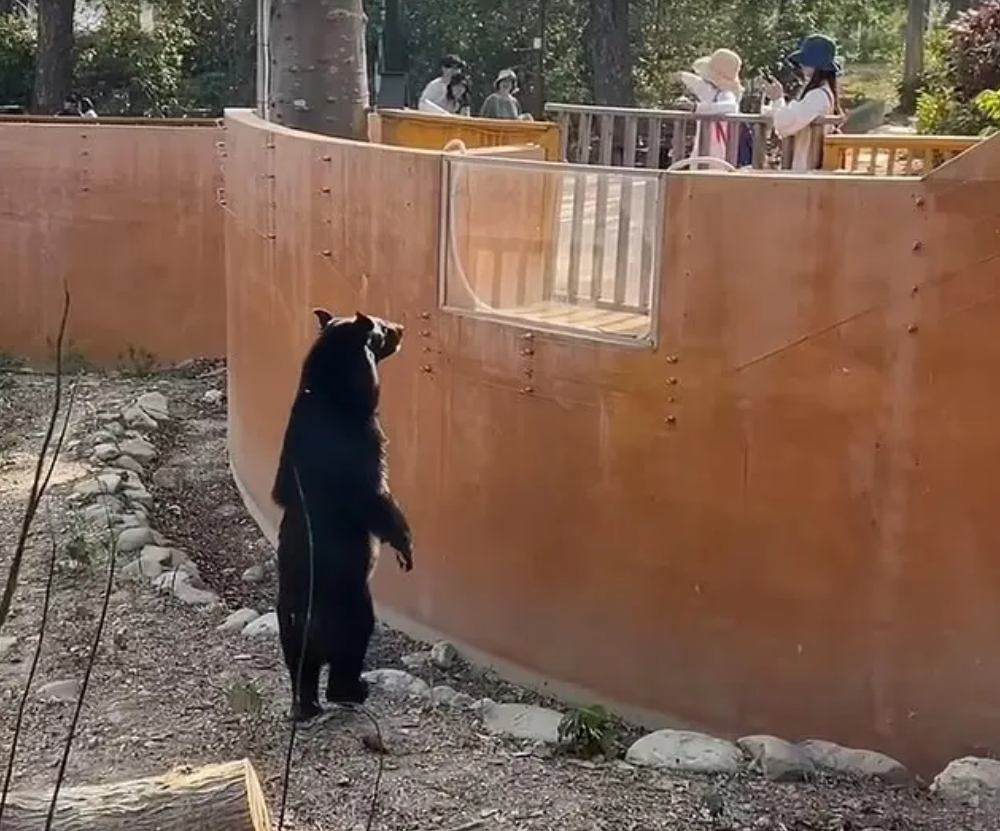 لم يصدق الزوار في حديقة حيوان شوشان في كاوشيونغ عيونهم عندما اقترب منهم الدب الأسود، المسمى بوبي.
